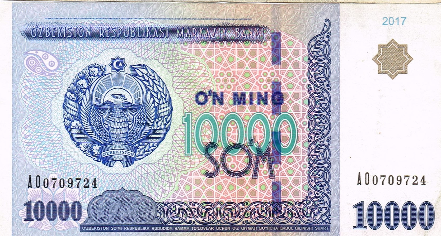 Depuis cette année, existent deux nouveaux billets : 50 000 sums (5 euros) depuis le 22 août 2017 et 10 000 sums. Avant, on n’utilisait que les billets de 200, 500 et 1000 sums.