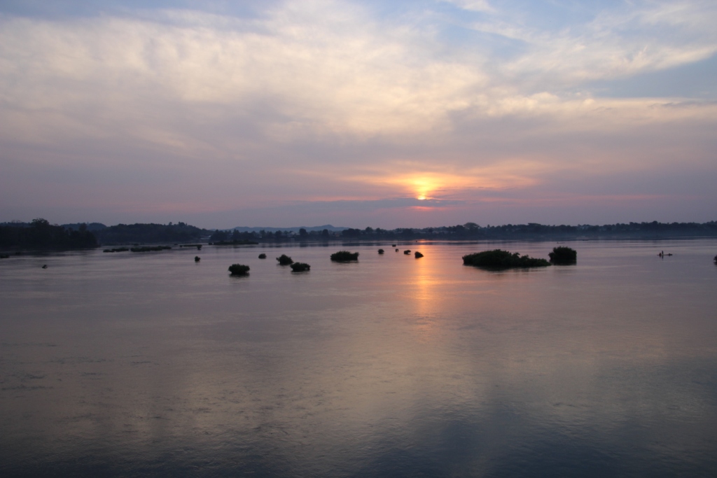 Lever de soleil sur l'île de Khong 7 Juin 2017 Premier matin, le Mékong : Deuxième matin, même chose, mais on ne s'en lasse pas...