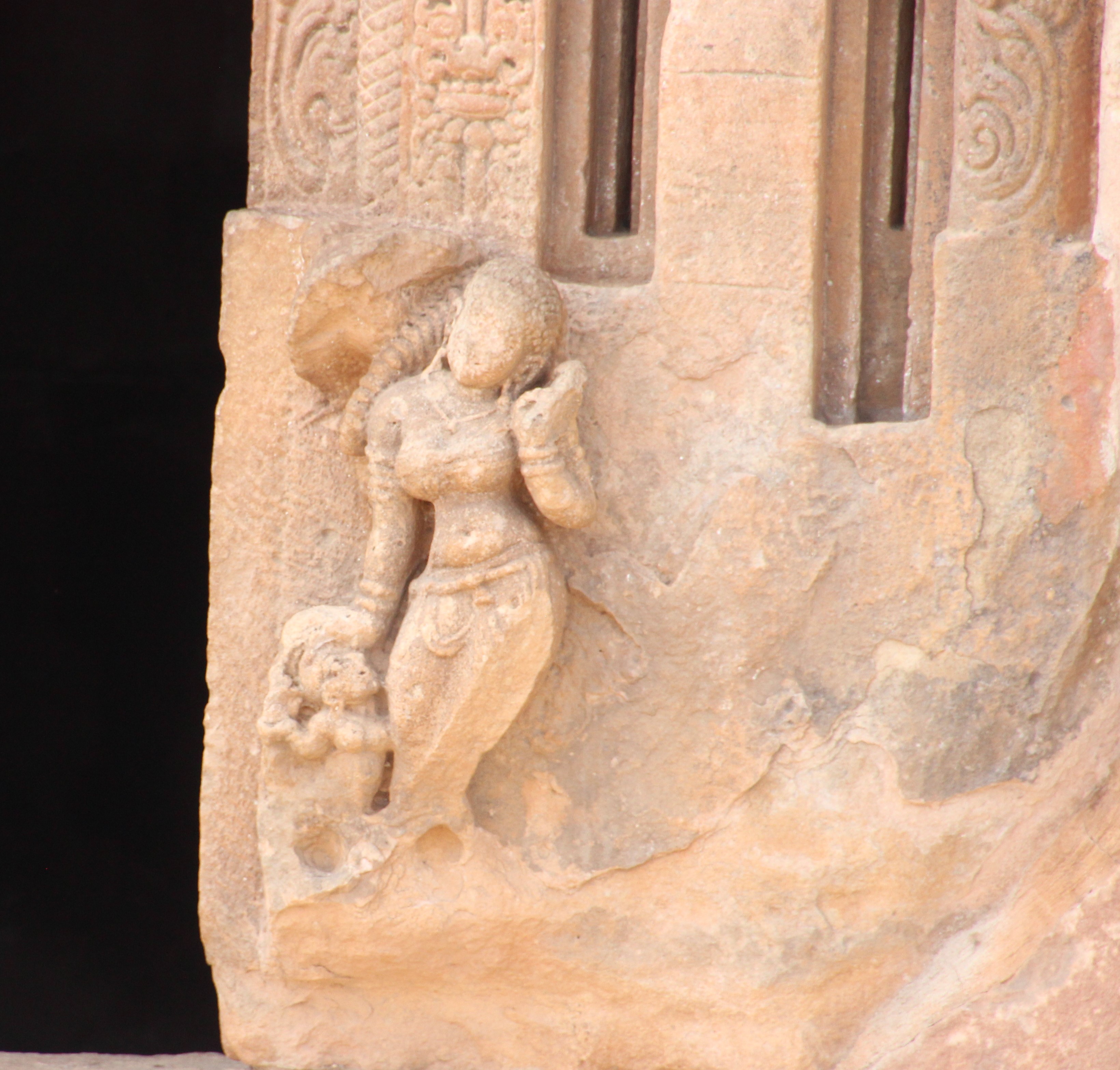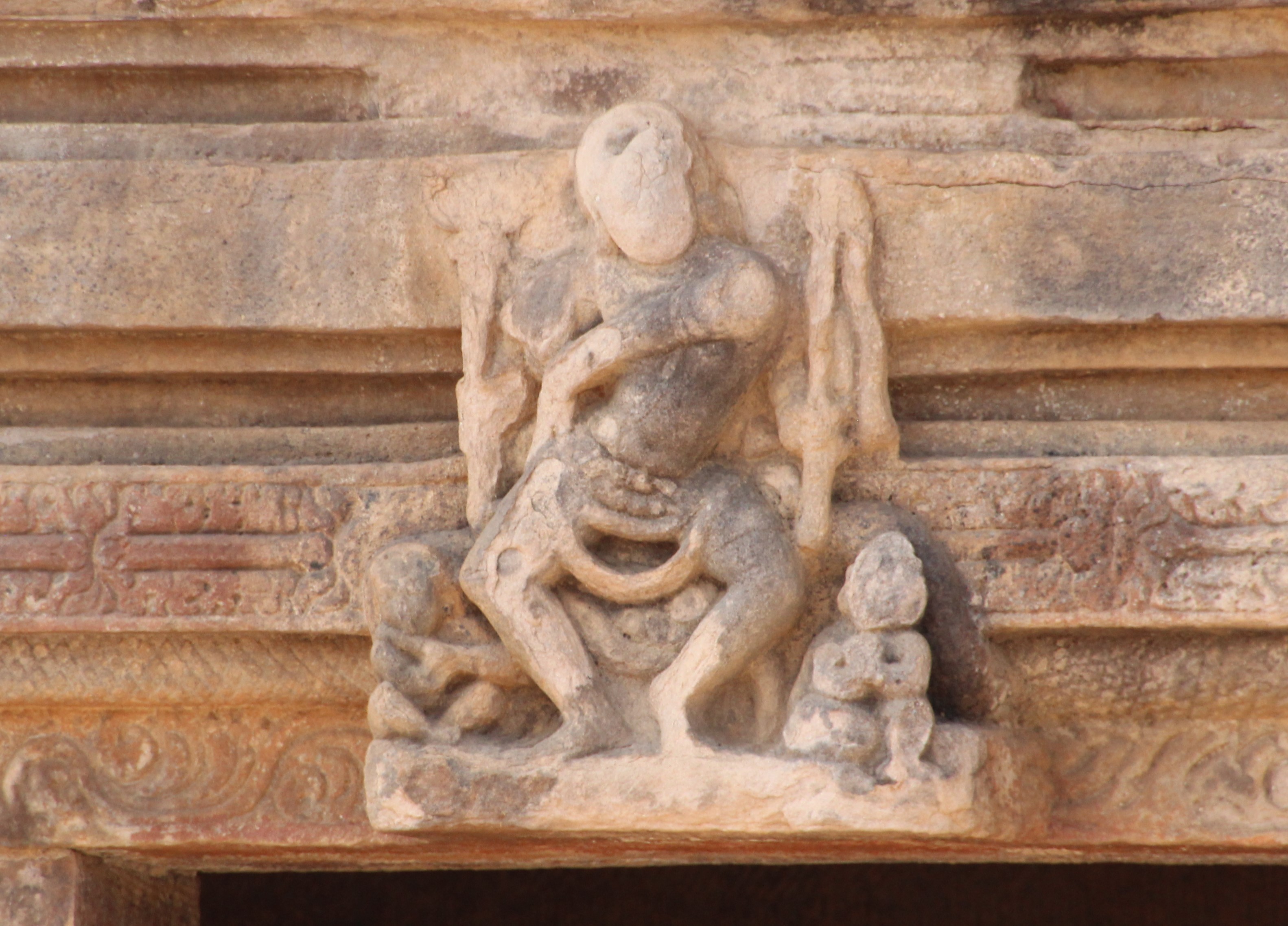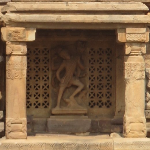 Dans une niche de la face sud, on voit Shiva transperçant le démon Andakasura qui voulait enlever Parvati. Il a huit bras et porte un collier de crânes, en guise de yajnopavita, le cordon sacré.